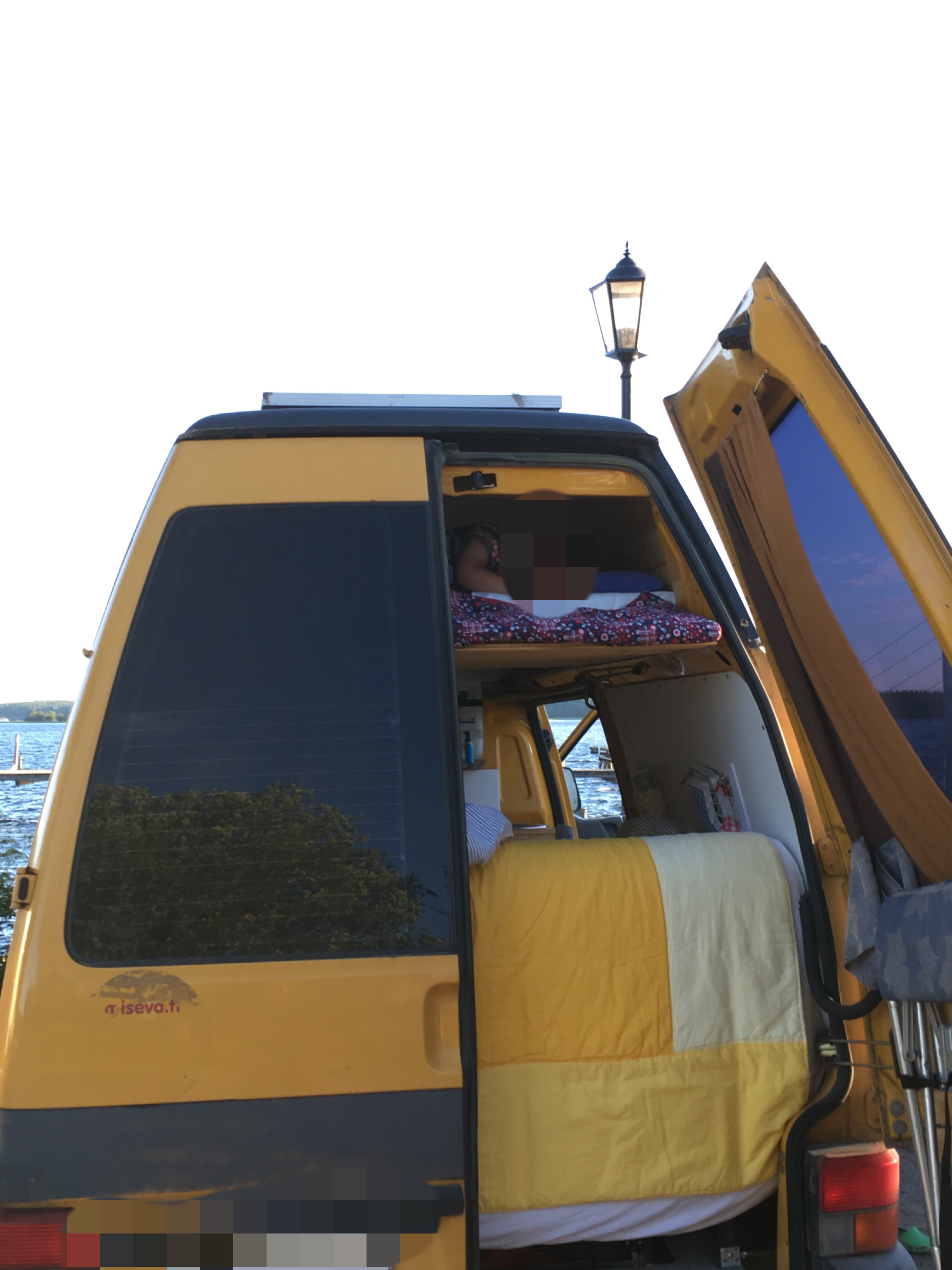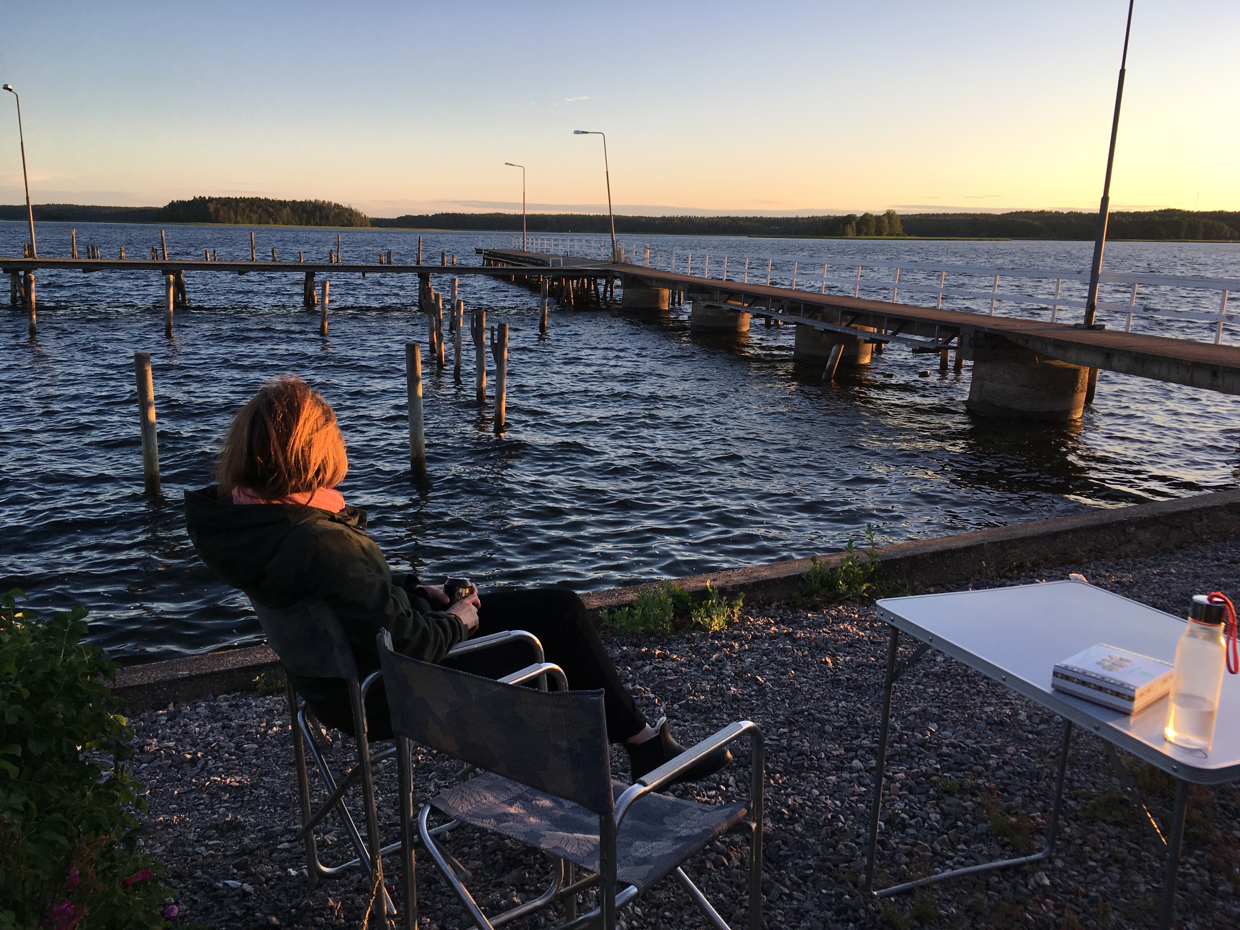 We want to take it easy in the beginning, giving everyone the chance to get used to the vehicle. After a short drive of about one hour we find a lovely spot right by the water in Tammisaari. It’s still fairly windy but we face the car towards the west so we can have our first ‘camping dinner’ outside and in the sunshine. Thank goodness we have prepared a pasta salad at home so we only need to sit down and enjoy.