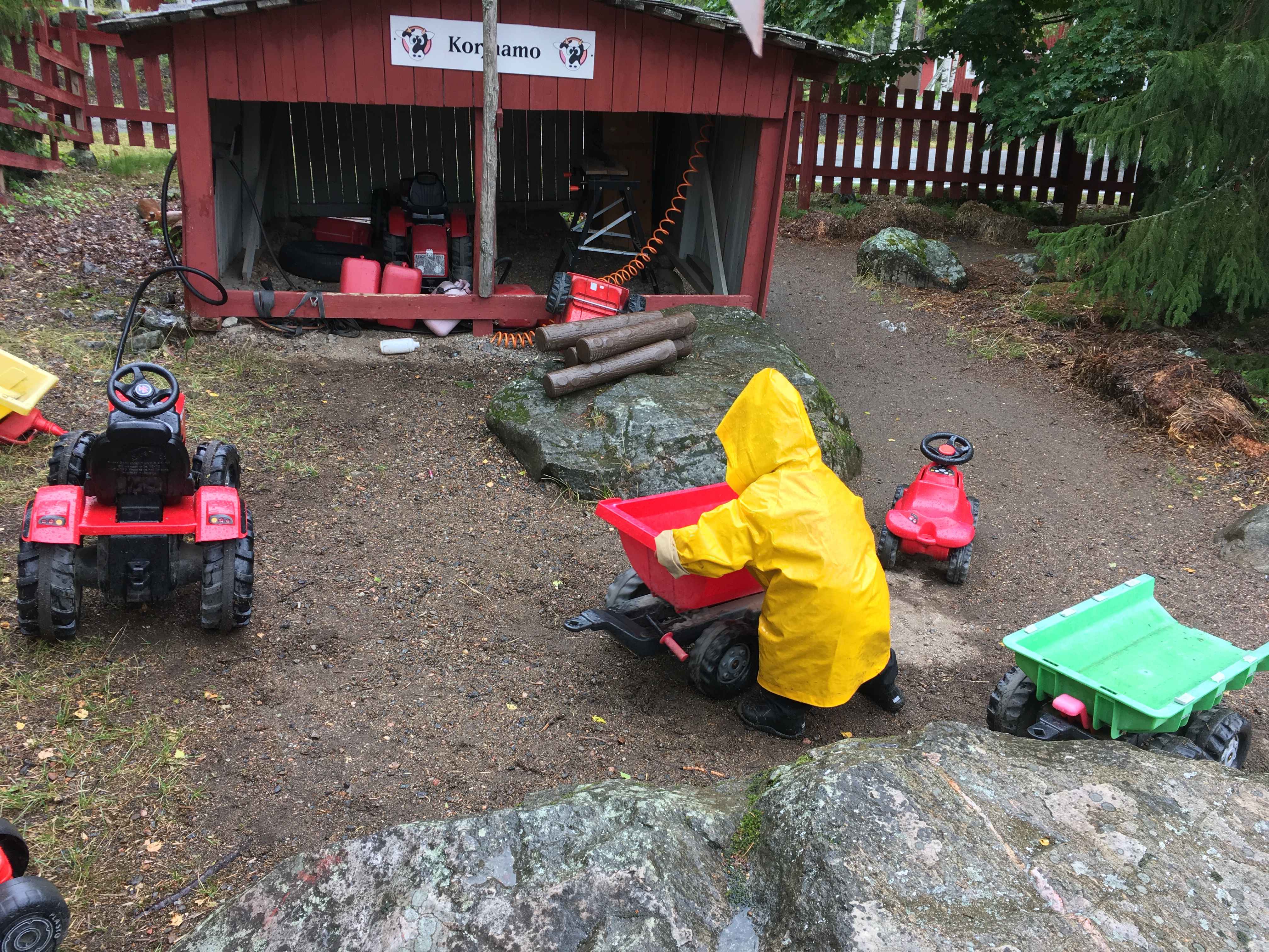 Is there anything quite as exciting for little kids as farms? Mats is head over heals in love with the big machinery such as tractors or balers. He also likes some of the animals but they don’t compare to the vehicles. So on a very rainy day on the west coast of Finland we decide to stop at “Muumaa” (Moo-land) in Merikarvia. Dressed in an oversized raincoat he wethers the weather and is very excited having the whole korjamo (garage) of tractors to himself. This includes of course that we also need to take turns and hang out in the rain. The determination and happiness shown on his face are worth it, though.
