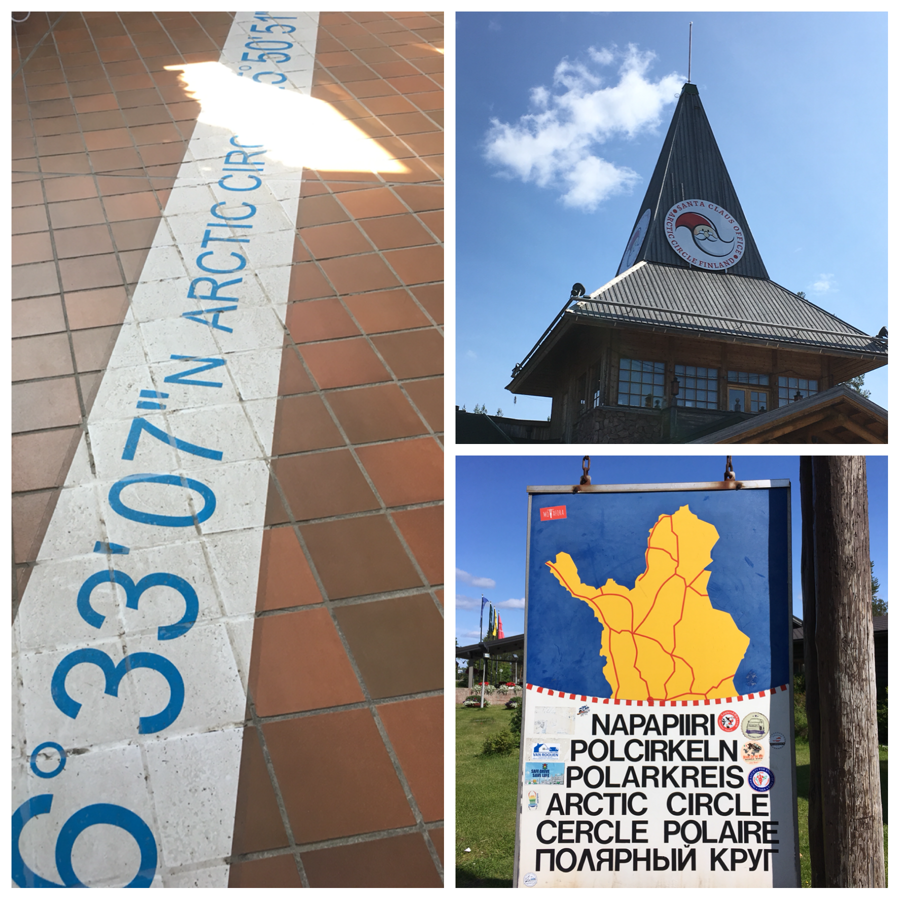 Most tourists will probably come to Rovaniemi in search for the joulupukki or napapiiri. Conveniently, Santa and the Artic Circle can be found right next to each other in a place that’s every inch as tacky as it’s name suggests: Santa Clause Village. Here, Santa can be met in his office almost every day of the year. I’m sure in the winter time there must be a different, maybe even magical feel to it, but in bright July sunlight it’s a bit odd. Mats has no interest in meeting Santa anyway and so Markus is the only one who pays the poor guy a visit on this very slow day at the office.