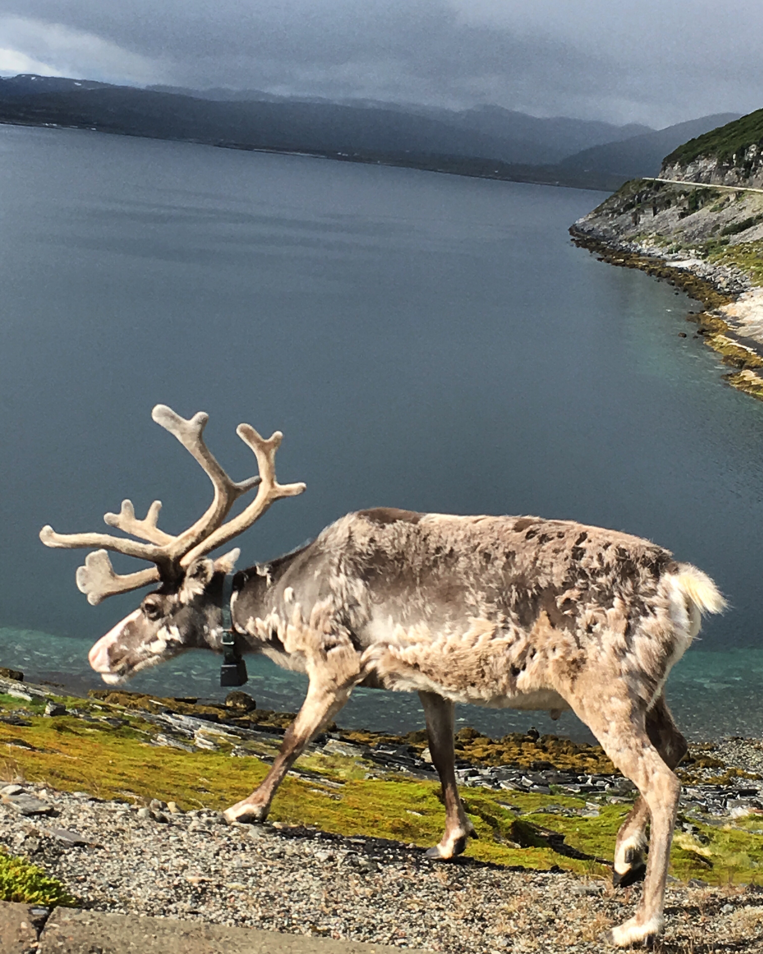 We have a small breakfast at the wheel and Markus and I feel reminded of traveling before having a child, setting the alarm for the wee hours to get going before the crowds on German Autobahns. The most striking difference besides the now-giggling-toddler between us is the light. Also, there is no traffic (except for some early-bird reindeer) and the scenery is simply stunning. After our snack Mats and I slowly drift back to sleep while Markus continues driving.