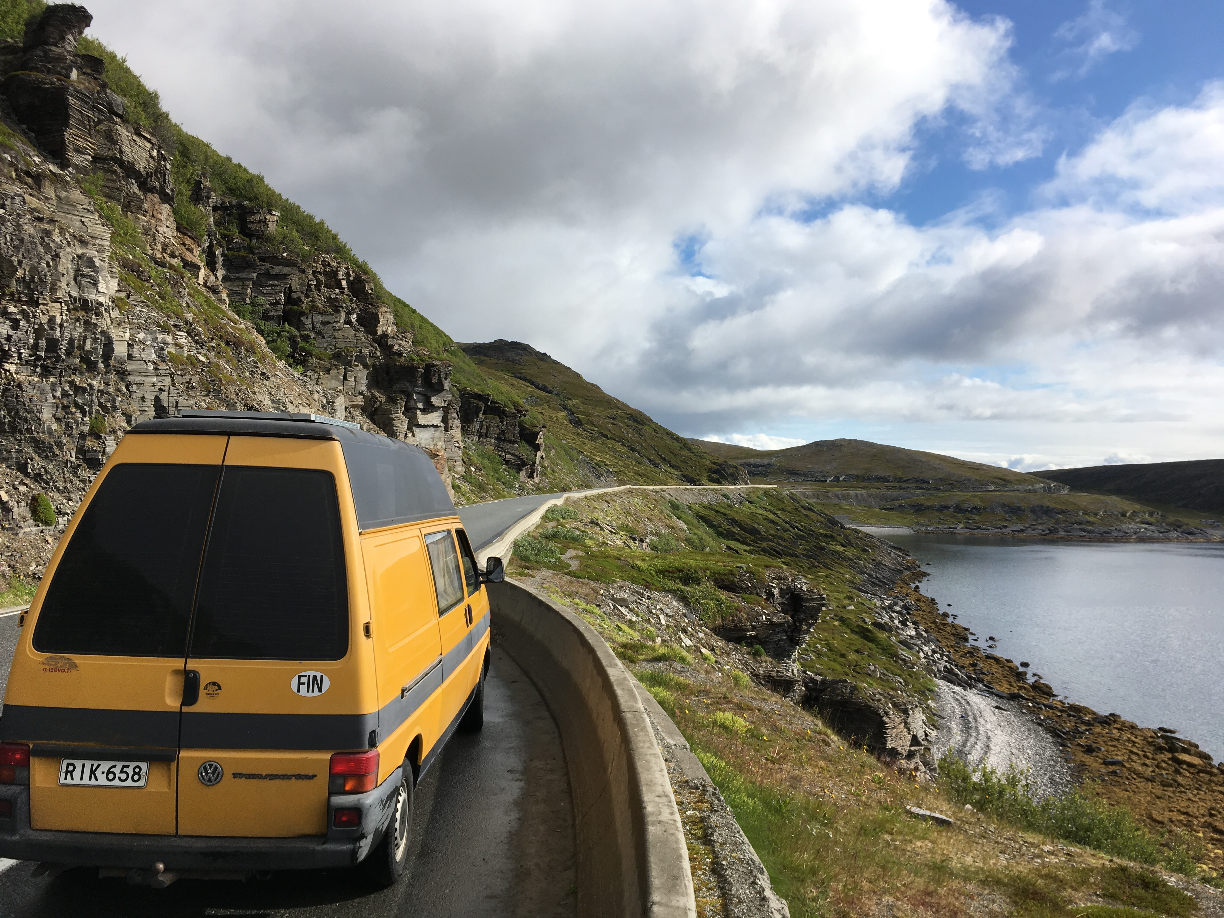 On the bright side it is broad daylight already so within minutes we have the van ready to hit the road. We refuel the tank at Karigasniemi and head over to Norway. It’s funny how you can cross a river and suddenly find yourself in a different country and even a different time zone. The landscape starts to look a lot different, too.